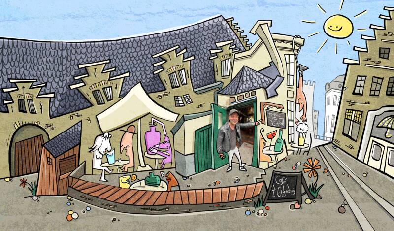 U kiest voor portretten waarbij uw gasten getekend worden met op de achtergrond de locatie van het feest. Vooral interessant bij leuke locaties met interessante gebouwen in een fotogenieke omgeving. Deze optie vergt meer voorbereidingswerk en is iets duurder, maar er valt nadien wel meer mee te doen. (uitnodigingen, groepsfoto, affiche, social media, menu... )