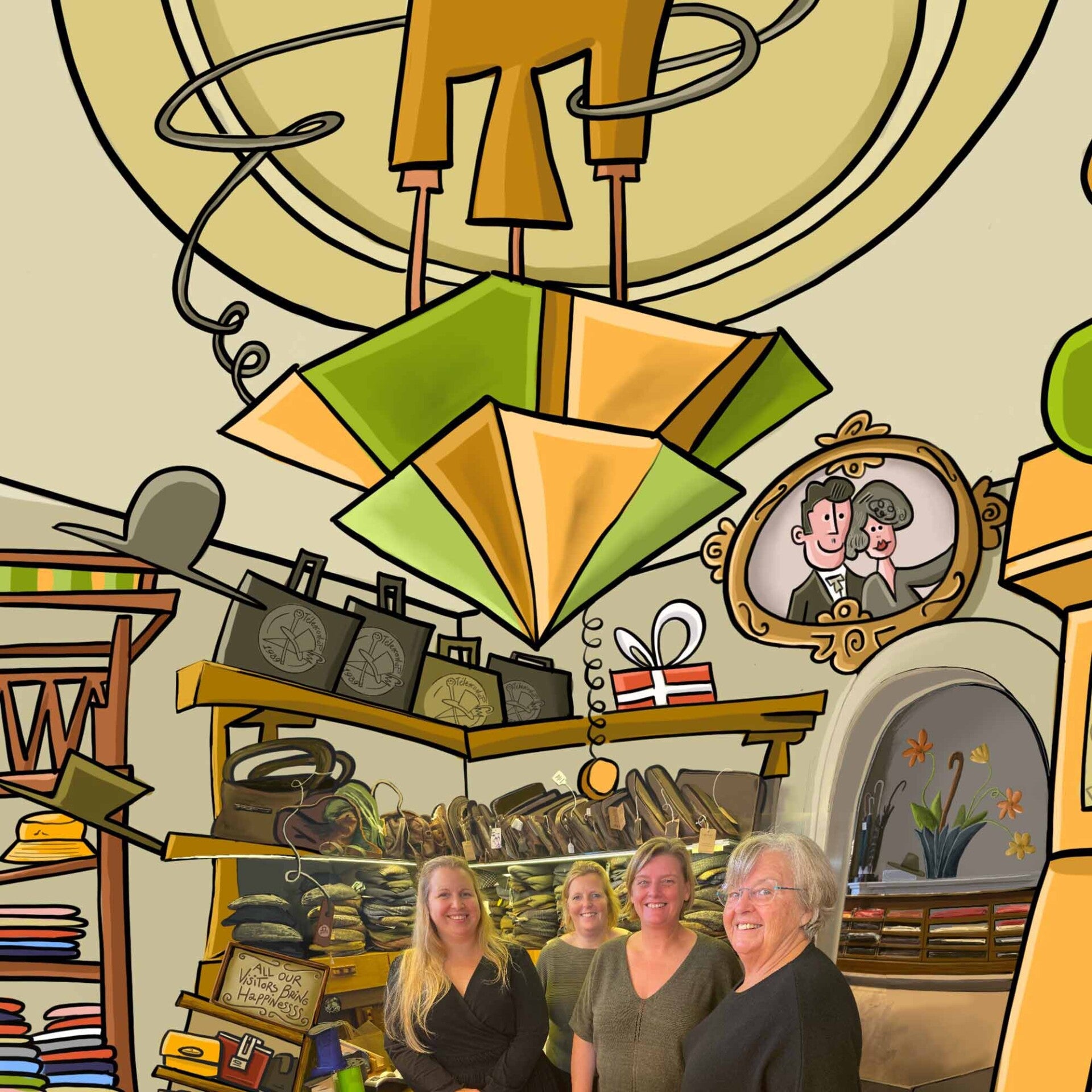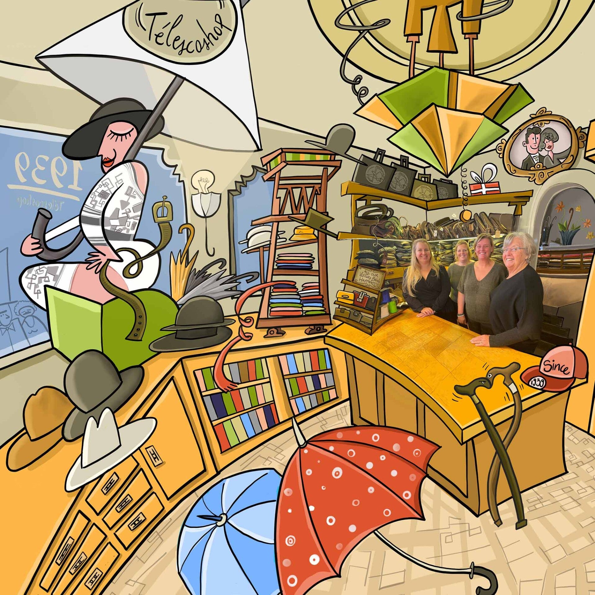 Al vijf generaties draait deze winkel op volle toeren. Hier kan je zelfs je paraplu nog laten repareren!!! Sinds 2000 kregen de paraplu's er het bonte gezelschap bij van hoeden in alle soorten en maten, petten, handschoenen, sjaals, handtassen...