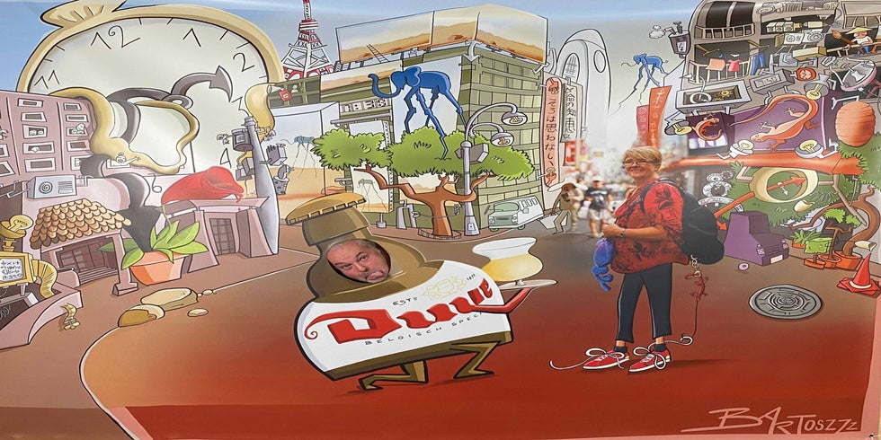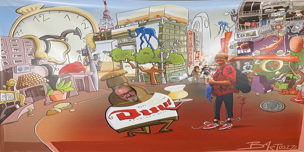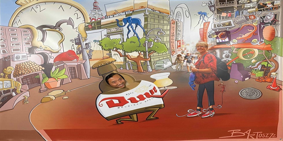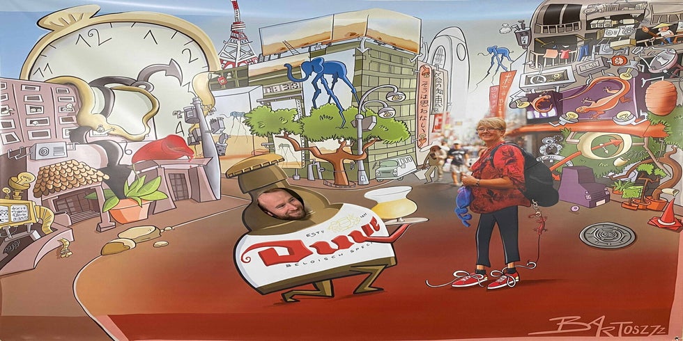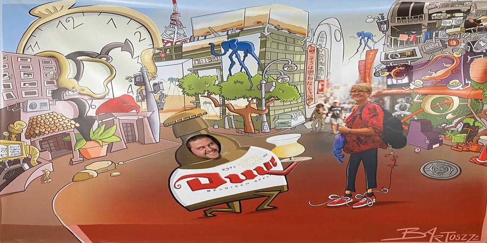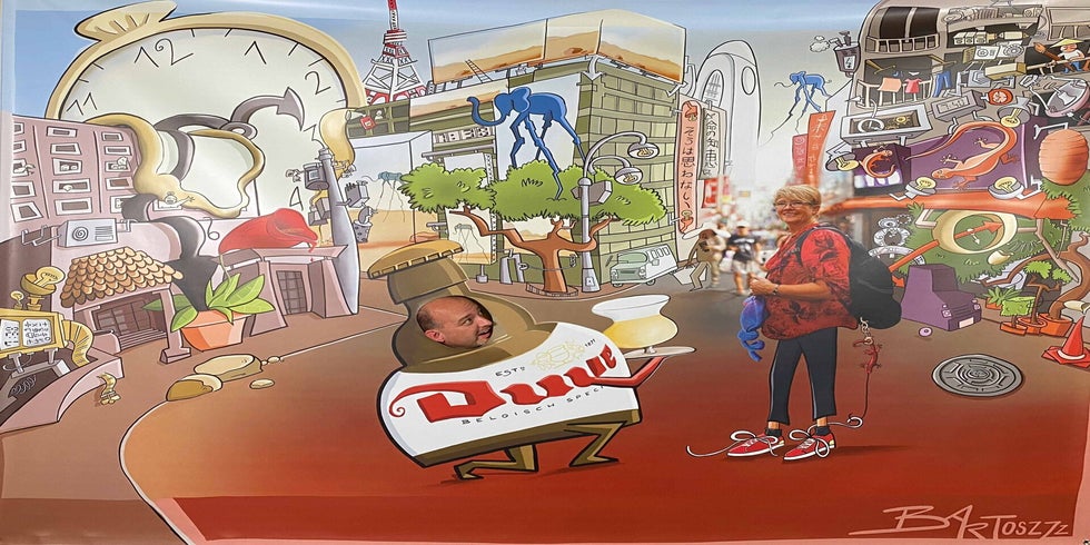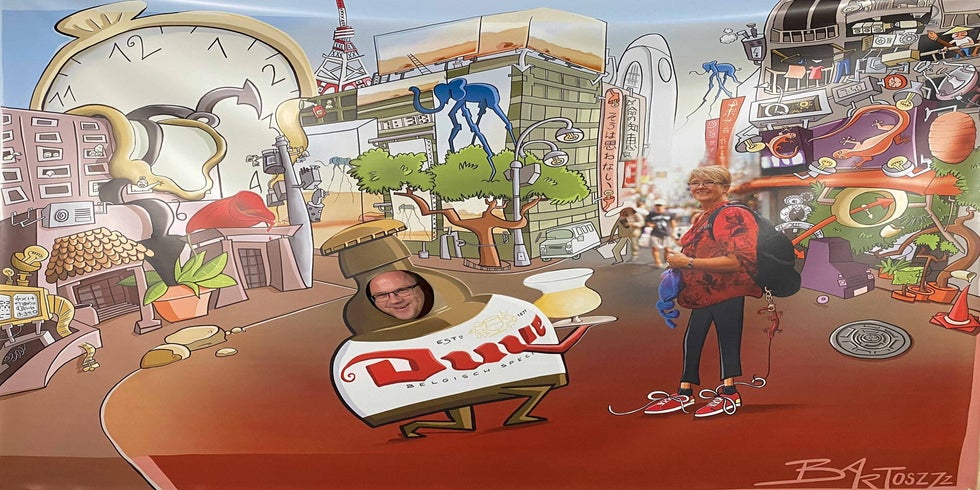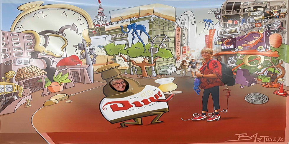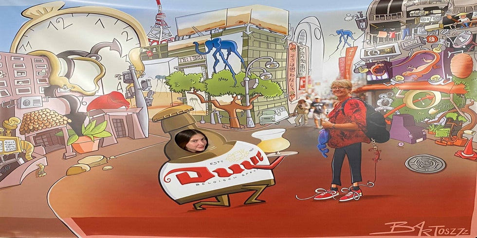 En als kers op de taart kreeg Katelijne een knieval van al haar collega’s! Ze nam niet alleen een groot ingekaderd portret cadeau, maar ook een levensgrote pancarte voor extra plezier op haar afscheidsfeest.