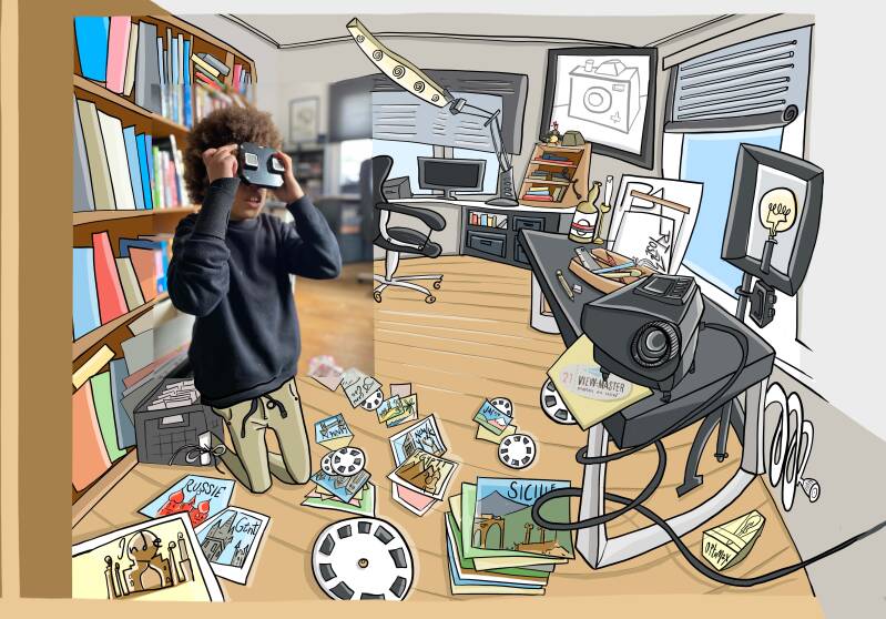 Portret van mijn goede vriend Thiago, trip around the world viewmaster!!! Weg met die tablet en andere digitale spelletjes, ook met een doos vol foto's en een old school viewmaster kan je een hele namiddag lang een fascinerende wereldreis maken! zalig om de jeugd door het analoge tijdperk te loodsen😀