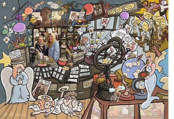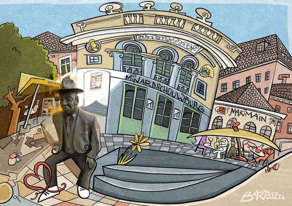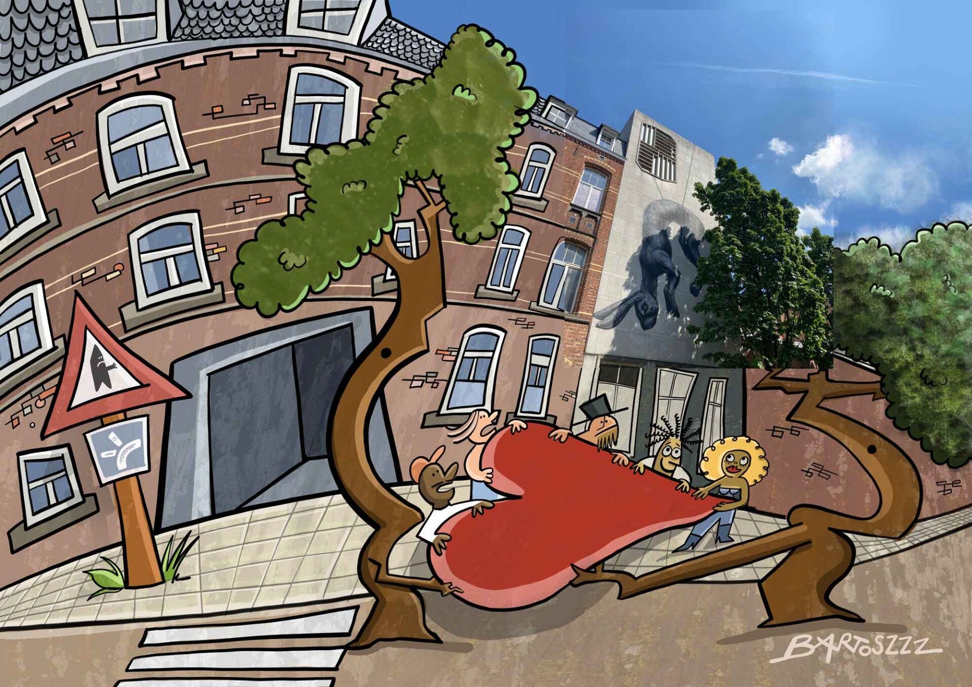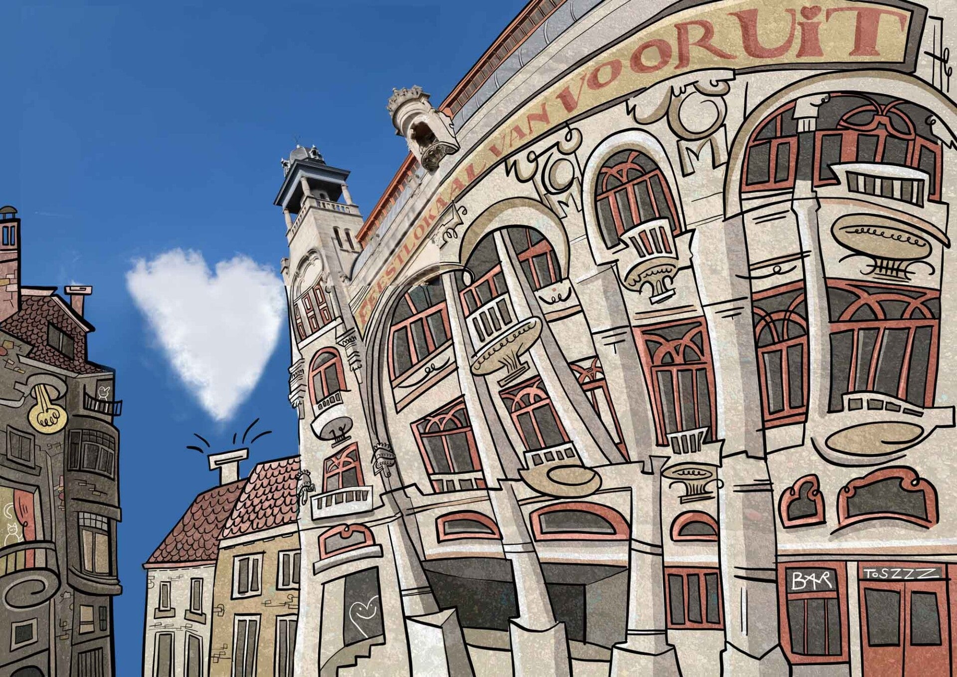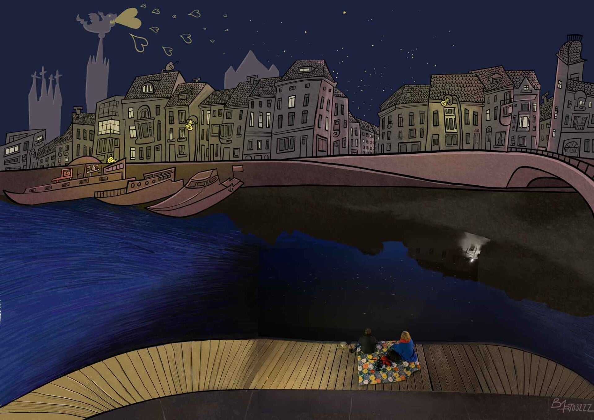 Een reeks met 10 originele postkaarten met illustrated snapshots van bekende en minder bekende plekjes in Gent.